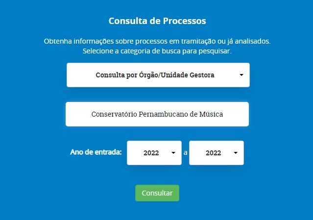Para obter informações referentes ao resultado de inspeções, auditorias, prestações e tomadas de contas realizadas no Conservatório Pernambucano de Música (CPM), através do Tribunal de Contas do Estado (TCE-PE), CLIQUE AQUI, selecionando a opção de pesquisa “Por Orgão/Unidade Gestora”, optando por consultar o Conservatório Pernambucano de Música.