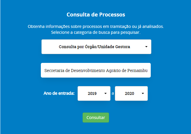 Para obter informações referentes ao resultado de inspeções, auditorias, prestações e tomadas de contas realizadas na Secretaria de Desenvolvimento Agrário (SDA), através do Tribunal de Contas do Estado (TCE-PE), CLIQUE AQUI, selecionando a opção de pesquisa “Por Orgão/Unidade Gestora”, optando por consultar a Secretaria de Desenvolvimento Agrário.